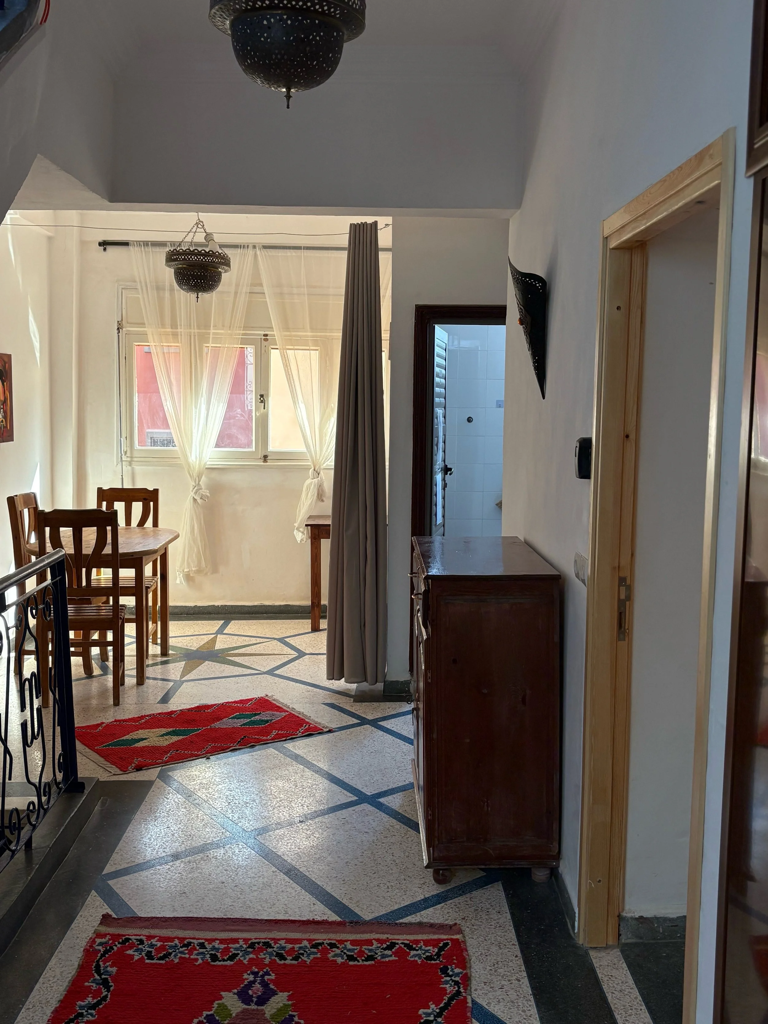 True to the spirit of Morocco, the space is filled with locally crafted artisanal touches – from hand-carved wooden doors and metal lanterns to woven rugs, colourful textiles, and original artwork. It's a home that tells a story, full of character and creativity.